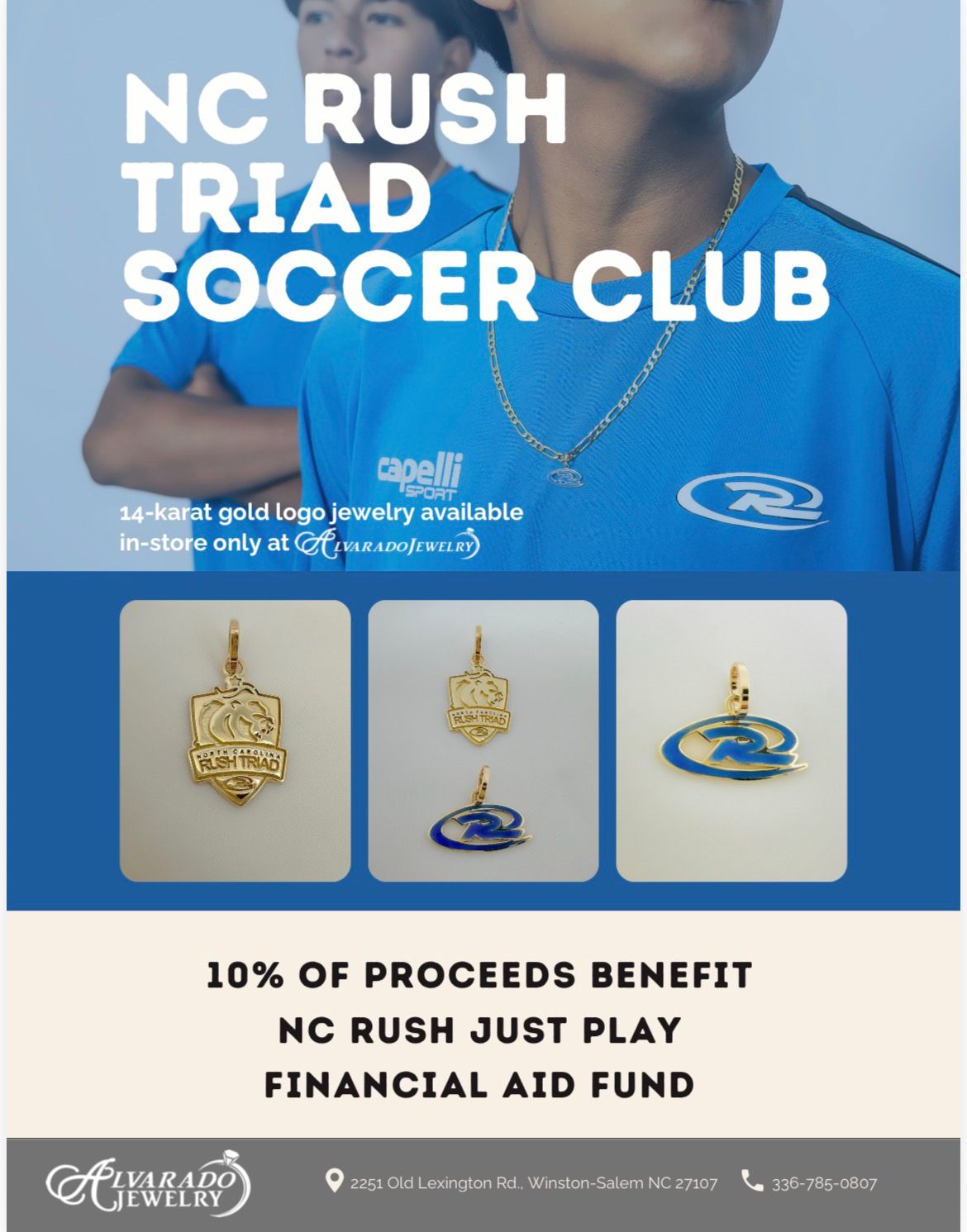 We’re excited to share the launch of a new line of NC Rush Jewelry from our friends at Alvarado Jewelry — proud partners in the upcoming NC Rush Soccer Complex coming soon to Waughtown, Winston-Salem!