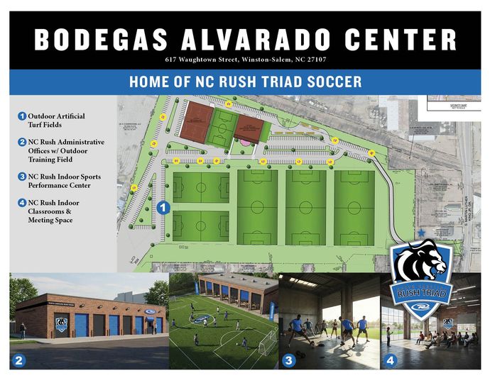 We are very excited to announce that the new home for NC Rush Youth Soccer will be in the new Bodegas Alvarado Center in Waughtown, conveniently located just minutes from downtown Winston-Salem!