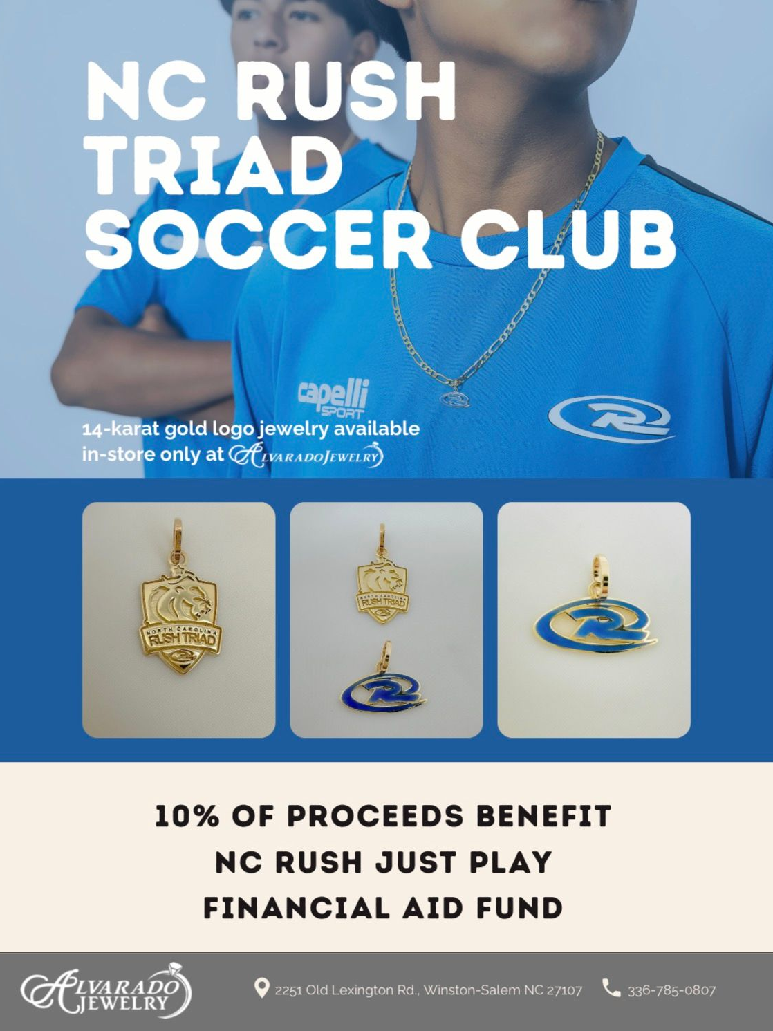 We’re excited to share the launch of a new line of NC Rush Jewelry from our friends at Alvarado Jewelry — proud partners in the upcoming NC Rush Soccer Complex coming soon to Waughtown, Winston-Salem!
